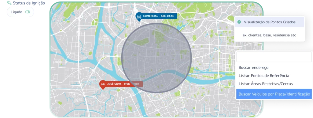 Usado para rastreamento dos veículos com atualizações automáticas.